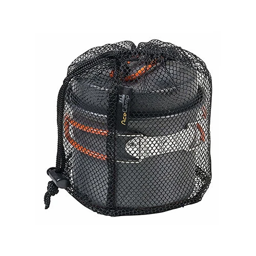The AceCamp hard-anodized solo cooking set is the perfect lightweight cooking set for one person. Durable and lightweight with a folding handle makes it great for camping.